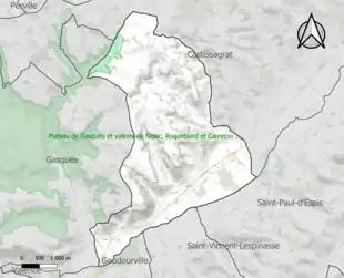 L’inventaire des zones naturelles d'intérêt écologique, faunistique et floristique (ZNIEFF) a pour objectif de réaliser une couverture des zones les plus intéressantes sur le plan écologique, essentiellement dans la perspective d’améliorer la connaissance du patrimoine naturel national et de fournir aux différents décideurs un outil d’aide à la prise en compte de l’environnement dans l’aménagement du territoire. Une ZNIEFF de type 1[Note 2] est recensée sur la commune[12] : le « plateau de Gasques et vallons de Najac, Roquebiard et Carretou » (705 ha), couvrant 6 communes dont deux dans le Lot-et-Garonne et quatre dans le Tarn-et-Garonne[13].