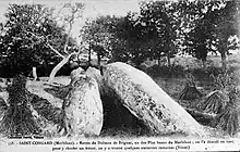 « Saint-Congard : commune formée de l'ancienne paroisse de ce nom ; aujourd'hui succursale. (...) On voit en Saint-Congard, près du hameau de Bignac, une roche aux fées formée de cinq tables, longue de 14 mètres et large de 2 m. (...) Géologie : schiste argileux ; grès dans le nord-ouest. On parle le français [en fait le gallo][28]. »