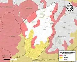 Le retrait-gonflement des sols argileux est susceptible d'engendrer des dommages importants aux bâtiments en cas d’alternance de périodes de sécheresse et de pluie. 47,5 % de la superficie communale est en aléa moyen ou fort (54,2 % au niveau départemental et 48,5 % au niveau national). Sur les 204 bâtiments dénombrés sur la commune en 2019, 116 sont en aléa moyen ou fort, soit 57 %, à comparer aux 57 % au niveau départemental et 54 % au niveau national. Une cartographie de l'exposition du territoire national au retrait gonflement des sols argileux est disponible sur le site du BRGM[13],[Carte 2].