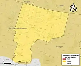 Le retrait-gonflement des sols argileux est susceptible d'engendrer des dommages importants aux bâtiments en cas d’alternance de périodes de sécheresse et de pluie. 99,7 % de la superficie communale est en aléa moyen ou fort (54,2 % au niveau départemental et 48,5 % au niveau national). Sur les 245 bâtiments dénombrés sur la commune en 2019, 245 sont en aléa moyen ou fort, soit 100 %, à comparer aux 57 % au niveau départemental et 54 % au niveau national. Une cartographie de l'exposition du territoire national au retrait gonflement des sols argileux est disponible sur le site du BRGM[13],[Carte 2].