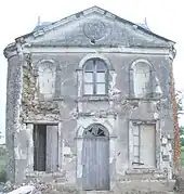 Le médaillon du fronton gravé NG (Naveau Gruau), avant restauration.