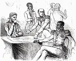 La colonie française de Saint-Domingue[1], située sur la partie occidentale de l'île d'Hispaniola (aussi appelée Haïti, au sens large du mot[2]), est officiellement une possession française à partir du traité de Ryswick, par lequel l'Espagne cède ce territoire à la France () et jusqu'à sa prise d'indépendance sous le nom d’Haïti (), son premier chef de l'État étant Jean-Jacques Dessalines, proclamé empereur d'Haïti sous le nom de Jacques Ier.