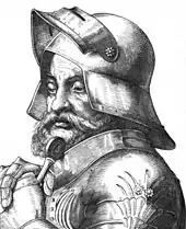 En 1441, le futur empereur Frédéric III ajoute au nom de l'empire « Teutonicae nationis »[39]. L'Empire s'étend alors en majeure partie sur un territoire germanophone, et malgré cela les Allemands, désunis, sont menacés de devoir partager le pouvoir impérial avec les Bourguignons à l'Ouest et les Tchèques à l'Est, ce qui les pousse à affirmer que l'empire est le leur. En 1486, empereur élu et couronné, Frédéric III utilise la titulature définitive, Heiliges Römisches Reich deutscher Nation[40]. Elle est reprise officiellement en 1512 dans le préambule des actes de la diète de Cologne. L'empereur Maximilien Ier avait alors convoqué les états impériaux pour entre autres « maintenir le Saint-Empire romain germanique »[C 3]. Jusqu'en 1806, Saint-Empire romain de la Nation germanique (Heiliges Römisches Reich Deutscher Nation) est l'appellation officielle de l'Empire, souvent abrégée en SRI pour Sacrum Romanum Imperium ou H. Röm. Reich[N 6] en allemand. Calque de l'allemand Heiliges Römisches Reich Deutscher Nation, la locution latine sacrum Romanum imperium Germanicae nationis est attestée en [42],[43].