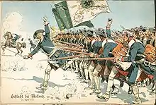 L'accession au trône d'Otton Ier laisse apparaître une famille royale pleine d'assurance. Otton se fait couronner sur le trône supposé de Charlemagne à Aix-la-Chapelle le [54] et cherche à sacraliser son pouvoir. Le nouveau roi se fait oindre et fait vœu de protéger l'Église. Après avoir combattu quelques proches et quelques ducs lorrains, Otton parvient à confirmer et assurer son pouvoir grâce à sa victoire sur les Hongrois en 955 à la bataille du Lechfeld près d'Augsbourg. Comme le faisaient les légionnaires romains, l'armée le salue sur le champ de bataille comme Imperator[55].