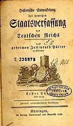 La dénomination française mentionnée démarque celle qui a été officiellement utilisée dans l'Empire du XVIe siècle au XVIIIe siècle, en latin : Sacrum Romanum Imperium Nationis Teutonicae Saint Empire romain de la nation teutonique »)[15], en allemand : Heiliges Römisches Reich Deutscher Nation[16] Saint-Empire romain de la nation allemande »).