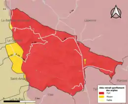 Les mouvements de terrains susceptibles de se produire sur la commune sont soit des chutes de blocs, soit des glissements de terrains, soit des mouvements liés au retrait-gonflement des argiles. Près de 50 % de la superficie du département est concernée par l'aléa retrait-gonflement des argiles, dont la commune de Saint-Félix-de-Tournegat[38]. L'inventaire national des cavités souterraines permet par ailleurs de localiser celles situées sur la commune[39].