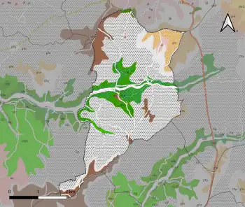 La superficie cadastrale de la commune publiée par l'Insee, qui sert de référence dans toutes les statistiques, est de 13,05 km2[5],[10],[Note 2]. La superficie géographique, issue de la BD Topo, composante du Référentiel à grande échelle produit par l'IGN, est quant à elle de 13,34 km2[3].