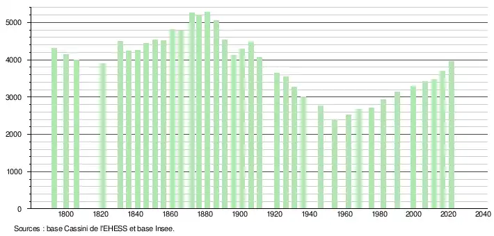 En 2021, la commune comptait 3 948 habitants[Note 4], en augmentation de 8,4 % par rapport à 2015 (Charente-Maritime : +3,35 %, France hors Mayotte : +1,84 %).