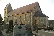 - Église Saint-Georges (XVIIe – XXe siècles, Reconstruction en 1952). Elle abrite une Vierge à l'Enfant du XIVe classée en 1983 au titre objet aux monuments historiques[26], ainsi que deux peintures a fresco du XXe : Notre-Dame de Lourdes et Le Sauveur par Robert Raoul André Guinard (1896-1989) et par son épouse Marcelle Delcour-Guinard (1896-1978), une statue de Jeanne d'Arc[27], un bas-relief du XIXe, des fonts baptismaux du XVIIIe[18].