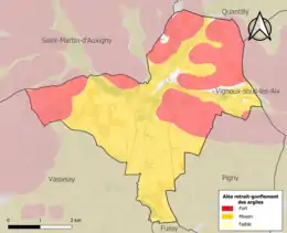 La commune est vulnérable au risque de mouvements de terrains constitué principalement du retrait-gonflement des sols argileux[15]. Cet aléa est susceptible d'engendrer des dommages importants aux bâtiments en cas d’alternance de périodes de sécheresse et de pluie. 97,6 % de la superficie communale est en aléa moyen ou fort (90 % au niveau départemental et 48,5 % au niveau national). Sur les 317 bâtiments dénombrés sur la commune en 2019, 275 sont en aléa moyen ou fort, soit 87 %, à comparer aux 83 % au niveau départemental et 54 % au niveau national. Une cartographie de l'exposition du territoire national au retrait gonflement des sols argileux est disponible sur le site du BRGM[16],[17].