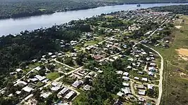 La commune brésilienne d'Oiapoque lui fait face, sur la rive opposée.
