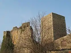 L'ancien château du XIIe siècle, remanié au début du XIIIe siècle, possède un donjon carré classé monument historique et une muraille inscrite à l'inventaire des monuments historiques. Le donjon, à destination militaire, mesure 19,5 mètres, et comprend quatre niveaux : une basse fosse aveugle et trois étages dont les deux premiers possèdent chacun deux fenêtres ; à l'intérieur on ne trouve aucun aménagement, la circulation se faisait grâce à des échelles. Autour se trouve une enceinte. Antoine d'Ars finance des réparations, dont la porte du donjon en 1481. Il est abandonné au Moyen Âge.