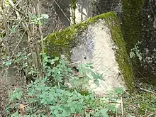 À Saint-Germain, cette voie romaine croisait une autre voie, d'importance secondaire, allant de Tusey (Tucinum ou Tussium) au sud au camp de Sorcy au nord, et non loin de l'intersection, au sud de la voie Nasium-Toul, se dressait une borne colossale, carrée, en pierre taillée, sans aucune inscription, dite dans le pays Borne d'Empire, qui fut débitée en moellons vers l'année 1820[17]. Une pierre semblable se trouve encore à Tusey, devant le mur du haut fourneau, situé derrière le château de la Fonderie (localisation 48° 37' 2.86" N, 5° 40' 11.5" E)[18]. Cette pierre a une forme cubique d'environ un mètre de côté, et présente une petite cavité au centre d'une des faces, dans laquelle est emboîtée une pièce métallique (voir photo).