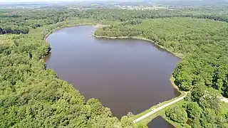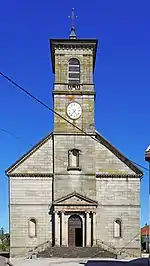 ![]() ![]() ![]() De haut en bas, de gauche à droite : le village et son église avec les Vosges en arrière-plan, l'étang du grand Saint-Maurice et la tourbière de la Grande Pile. |