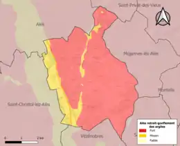 Le retrait-gonflement des sols argileux est susceptible d'engendrer des dommages importants aux bâtiments en cas d’alternance de périodes de sécheresse et de pluie. La totalité de la commune est en aléa moyen ou fort (67,5 % au niveau départemental et 48,5 % au niveau national). Sur les 1 781 bâtiments dénombrés sur la commune en 2019, 1781 sont en aléa moyen ou fort, soit 100 %, à comparer aux 90 % au niveau départemental et 54 % au niveau national. Une cartographie de l'exposition du territoire national au retrait gonflement des sols argileux est disponible sur le site du BRGM[18],[Carte 2].
