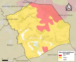 Le retrait-gonflement des sols argileux est susceptible d'engendrer des dommages importants aux bâtiments en cas d’alternance de périodes de sécheresse et de pluie. 94,7 % de la superficie communale est en aléa moyen ou fort (90,2 % au niveau départemental et 48,5 % au niveau national). Sur les 399 bâtiments dénombrés sur la commune en 2019, 384 sont en aléa moyen ou fort, soit 96 %, à comparer aux 91 % au niveau départemental et 54 % au niveau national. Une cartographie de l'exposition du territoire national au retrait gonflement des sols argileux est disponible sur le site du BRGM[29],[30].
