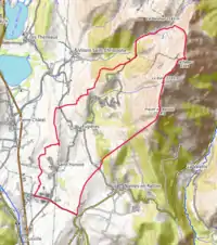 L'occupation des sols de la commune, telle qu'elle ressort de la base de données européenne d’occupation biophysique des sols Corine Land Cover (CLC), est marquée par l'importance des forêts et milieux semi-naturels (54,9 % en 2018), une proportion sensiblement équivalente à celle de 1990 (53,9 %). La répartition détaillée en 2018 est la suivante : milieux à végétation arbustive et/ou herbacée (30,2 %), prairies (24,1 %), zones agricoles hétérogènes (17,4 %), forêts (16,6 %), espaces ouverts, sans ou avec peu de végétation (8,1 %), zones urbanisées (2,1 %), zones industrielles ou commerciales et réseaux de communication (1,4 %)[12]. L'évolution de l’occupation des sols de la commune et de ses infrastructures peut être observée sur les différentes représentations cartographiques du territoire : la carte de Cassini (XVIIIe siècle), la carte d'état-major (1820-1866) et les cartes ou photos aériennes de l'IGN pour la période actuelle (1950 à aujourd'hui)[Carte 1].