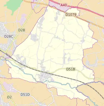 Au nord, la route départementale D 1079 traverse le nord de commune. Cette voie débute à Mâcon par le pont Saint-Laurent et prend fin dans la ville de Bourg-en-Bresse. Elle permet de rejoindre par l'ouest Replonges, Mâcon et le département de Saône-et-Loire tandis que par l'est, elle permet de rejoindre Bourg et les autres villes importantes du département. Elle marque la frontière avec Bâgé-la-Ville et Saint-Cyr-sur-Menthon. Avant 2006, année de son déclassement, cet axe de communication faisait partie de la route nationale 79 qui reliait Saint-Éloi, commune située près de Nevers, à Montréal-la-Cluse située près de Nantua.