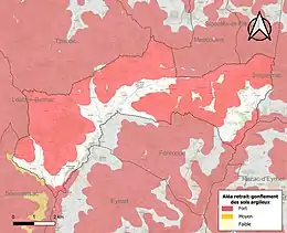 Les mouvements de terrains susceptibles de se produire sur la commune sont des tassements différentiels[40]. Le retrait-gonflement des sols argileux est susceptible d'engendrer des dommages importants aux bâtiments en cas d’alternance de périodes de sécheresse et de pluie[41]. 71,9 % de la superficie communale est en aléa moyen ou fort (58,6 % au niveau départemental et 48,5 % au niveau national métropolitain)[42]. Depuis le , en application de la loi ÉLAN, différentes contraintes s'imposent aux vendeurs, maîtres d'ouvrages ou constructeurs de biens situés dans une zone classée en aléa moyen ou fort[Note 4],[43].