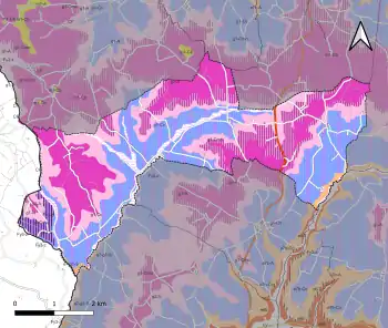 La superficie cadastrale de la commune publiée par l'Insee, qui sert de référence dans toutes les statistiques, est de 19,73 km2[11],[Note 2].