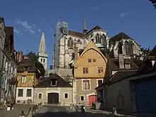 Rue du Garde-Neige avec au fond l'abbaye Saint-Germain d'Auxerre.