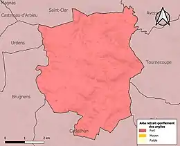 Le retrait-gonflement des sols argileux est susceptible d'engendrer des dommages importants aux bâtiments en cas d’alternance de périodes de sécheresse et de pluie. La totalité de la commune est en aléa moyen ou fort (94,5 % au niveau départemental et 48,5 % au niveau national). Sur les 105 bâtiments dénombrés sur la commune en 2019, 105 sont en aléa moyen ou fort, soit 100 %, à comparer aux 93 % au niveau départemental et 54 % au niveau national. Une cartographie de l'exposition du territoire national au retrait gonflement des sols argileux est disponible sur le site du BRGM[21],[Carte 3].