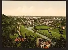 L'occupation des sols de la commune, telle qu'elle ressort de la base de données européenne d’occupation biophysique des sols Corine Land Cover (CLC), est marquée par l'importance des territoires agricoles (59,2 % en 2018), néanmoins en diminution par rapport à 1990 (67,3 %). La répartition détaillée en 2018 est la suivante : prairies (47,2 %), zones urbanisées (25,6 %), zones industrielles ou commerciales et réseaux de communication (15,2 %), terres arables (12 %)[22]. L'évolution de l’occupation des sols de la commune et de ses infrastructures peut être observée sur les différentes représentations cartographiques du territoire : la carte de Cassini (XVIIIe siècle), la carte d'état-major (1820-1866) et les cartes ou photos aériennes de l'IGN pour la période actuelle (1950 à aujourd'hui)[Carte 2].