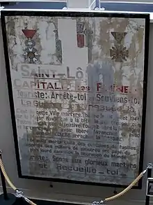 Ses habitants sont appelés Saint-Lois. Les noms de Laudois, Laudiens ou Laudiniens sont également cités[1]. Ville martyre de la Seconde Guerre mondiale, Saint-Lô fut décorée de la Légion d'honneur en 1948 et reçut le surnom de « Capitale des Ruines », une expression popularisée par Samuel Beckett[2]. Depuis 2014, la ville connaît une réhabilitation progressive de son centre historique[3].