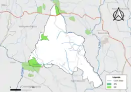Carte de la ZNIEFF de type 2 de la commune.