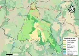 L'occupation des sols de la commune, telle qu'elle ressort de la base de données européenne d’occupation biophysique des sols Corine Land Cover (CLC), est marquée par l'importance des territoires agricoles (76,9 % en 2018), en augmentation par rapport à 1990 (71 %). La répartition détaillée en 2018 est la suivante : prairies (46,6 %), terres arables (26,5 %), forêts (16,3 %), milieux à végétation arbustive et/ou herbacée (6,8 %), zones agricoles hétérogènes (3,8 %)[30].