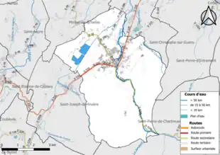 - Le Ruisseau de l'Aigue-Noire d'une longueur de 2,7 km[7], et le Tenaison, d'une longueur de 5 km[8], sont deux ruisseaux qui s'écoulent sur le territoire de la commune. Ce sont également deux affluents du Guiers.