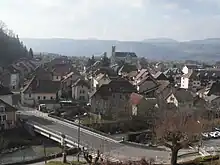 Place de l'église de Saint-Laurent-du-Pont en 2018. | |||||