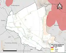 Le retrait-gonflement des sols argileux est susceptible d'engendrer des dommages importants aux bâtiments en cas d’alternance de périodes de sécheresse et de pluie. 0,2 % de la superficie communale est en aléa moyen ou fort (54,2 % au niveau départemental et 48,5 % au niveau national). Sur les 44 bâtiments dénombrés sur la commune en 2019, aucun n'est en aléa moyen ou fort, à comparer aux 57 % au niveau départemental et 54 % au niveau national. Une cartographie de l'exposition du territoire national au retrait gonflement des sols argileux est disponible sur le site du BRGM[11],[Carte 2].