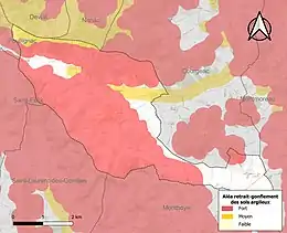 Le retrait-gonflement des sols argileux est susceptible d'engendrer des dommages importants aux bâtiments en cas d’alternance de périodes de sécheresse et de pluie. 80,3 % de la superficie communale est en aléa moyen ou fort (67,4 % au niveau départemental et 48,5 % au niveau national). Sur les 90 bâtiments dénombrés sur la commune en 2019, 75 sont en aléa moyen ou fort, soit 83 %, à comparer aux 81 % au niveau départemental et 54 % au niveau national. Une cartographie de l'exposition du territoire national au retrait gonflement des sols argileux est disponible sur le site du BRGM[26],[Carte 3].