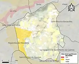 Le retrait-gonflement des sols argileux est susceptible d'engendrer des dommages importants aux bâtiments en cas d’alternance de périodes de sécheresse et de pluie. 11,2 % de la superficie communale est en aléa moyen ou fort (59,3 % au niveau départemental et 48,5 % au niveau national). Sur les 66 bâtiments dénombrés sur la commune en 2019, 0 sont en aléa moyen ou fort, soit 0 %, à comparer aux 85 % au niveau départemental et 54 % au niveau national. Une cartographie de l'exposition du territoire national au retrait gonflement des sols argileux est disponible sur le site du BRGM[20],[Carte 2].