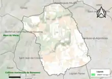 L'occupation des sols de la commune, telle qu'elle ressort de la base de données européenne d’occupation biophysique des sols Corine Land Cover (CLC), est marquée par l'importance des territoires agricoles (74,6 % en 2018), une proportion sensiblement équivalente à celle de 1990 (74,3 %). La répartition détaillée en 2018 est la suivante : cultures permanentes (45,6 %), zones agricoles hétérogènes (29 %), forêts (16,2 %), milieux à végétation arbustive et/ou herbacée (9,3 %)[11]. L'évolution de l’occupation des sols de la commune et de ses infrastructures peut être observée sur les différentes représentations cartographiques du territoire : la carte de Cassini (XVIIIe siècle), la carte d'état-major (1820-1866) et les cartes ou photos aériennes de l'IGN pour la période actuelle (1950 à aujourd'hui)[Carte 1].