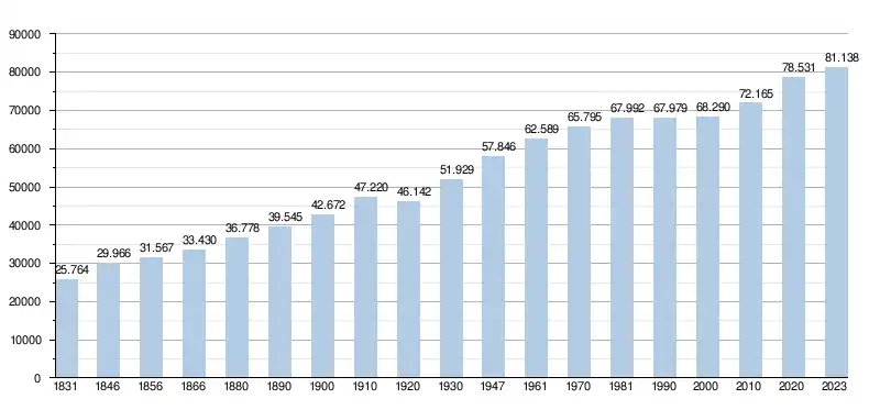• Source : DGS - Remarque: 1831 jusqu'à 1981=recensement; depuis 1990=nombre d'habitants chaque 1er janvier[6]