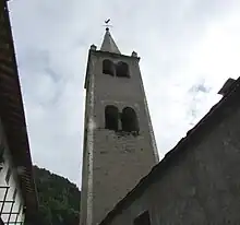 Nul ne sait quand fut fondée l'église paroissiale consacrée à Oyend de Condat mais elle fut reconstruite en de fond en comble en 1820 et agrandie en 1933. La construction actuelle comprend une nef couverte par une voûte à pénétration et un double chœur doté d'une voûte à 8 arêtes. Des fresques décorent les parois et les voûtes de l'église qui renferme également un remarquable crucifix du XVIIIe siècle et un reliquaire en argent partiellement doré et serti de cristaux, ouvrage de l'orfèvre suisse Alexandre Lanezwing et don du prévôt du Grand-Saint-Bernard Roland Viot en 1636.Le campanile, qui remonte probablement au XVIIe siècle, se trouve au nord de l'église.