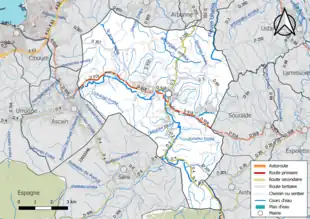 La commune à vingt kilomètres de Bayonne est desservie par les routes départementales D 3, D 4, D 255, D 305, D 307, D 855, D 856 et D 918.