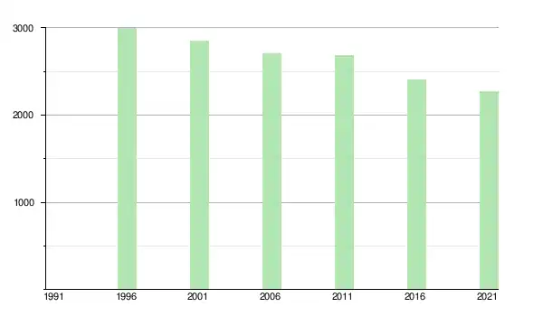 On compte, en 2016, 2 400 individus sur une superficie totale de 137,21 km2. Ce qui fait un ratio de 17,5 personnes/km².