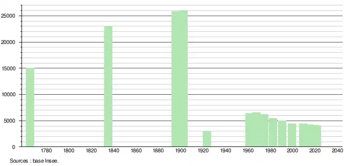- Population municipale légale en vigueur au 1er janvier 2024, millésimée 2021, définie dans les limites territoriales en vigueur au 1er janvier 2023, date de référence statistique : 1er janvier 2021.