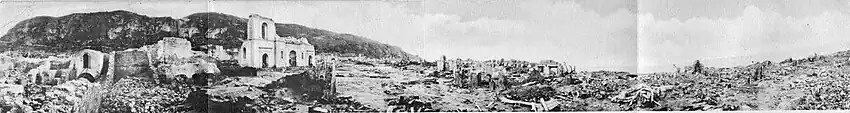 Saint-Pierre, en arrière-plan la montagne Pelée. | |||