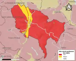 Les mouvements de terrains susceptibles de se produire sur la commune sont soit des chutes de blocs, soit des glissements de terrains, soit des effondrements liés à des cavités souterraines, soit des mouvements liés au retrait-gonflement des argiles. Près de 50 % de la superficie du département est concernée par l'aléa retrait-gonflement des argiles, dont la commune de Saint-Quentin-la-Tour[36]. L'inventaire national des cavités souterraines permet par ailleurs de localiser celles situées sur la commune[37].