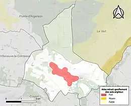 Le retrait-gonflement des sols argileux est susceptible d'engendrer des dommages importants aux bâtiments en cas d’alternance de périodes de sécheresse et de pluie. 6,9 % de la superficie communale est en aléa moyen ou fort (54,2 % au niveau départemental et 48,5 % au niveau national). Sur les 88 bâtiments dénombrés sur la commune en 2019, 63 sont en aléa moyen ou fort, soit 72 %, à comparer aux 57 % au niveau départemental et 54 % au niveau national. Une cartographie de l'exposition du territoire national au retrait gonflement des sols argileux est disponible sur le site du BRGM[13],[Carte 2].