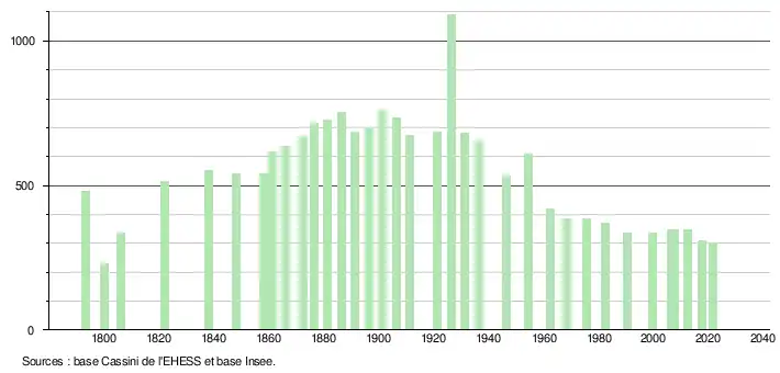 - Fiches Insee - Populations légales de la commune pour les années 2006, 2007, 2008, 2009, 2010, 2011, 2012, 2013, 2014, 2015, 2016, 2017, 2018, 2019, 2020 et 2021.