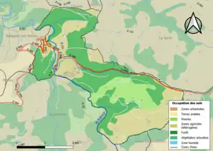 L'occupation des sols de la commune, telle qu'elle ressort de la base de données européenne d’occupation biophysique des sols Corine Land Cover (CLC), est marquée par l'importance des territoires agricoles (52,7 % en 2018), une proportion sensiblement équivalente à celle de 1990 (52,7 %). La répartition détaillée en 2018 est la suivante : forêts (47,3 %), zones agricoles hétérogènes (39,4 %), prairies (13,3 %)[20].