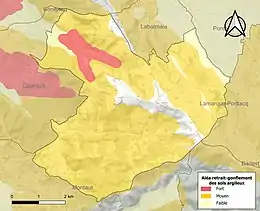 Le retrait-gonflement des sols argileux est susceptible d'engendrer des dommages importants aux bâtiments en cas d’alternance de périodes de sécheresse et de pluie[31]. 87,4 % de la superficie communale est en aléa moyen ou fort (59 % au niveau départemental et 48,5 % au niveau national)[Carte 5]. Depuis le , en application de la loi ELAN, différentes contraintes s'imposent aux vendeurs, maîtres d'ouvrages ou constructeurs de biens situés dans une zone classée en aléa moyen ou fort[Note 7],[32].