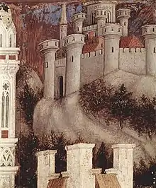 Une certaine évolution, plus ou moins consciente, vers une sensibilité que l'on peut qualifier de « Renaissance », se perçoit cependant dans la disposition psychologique des personnages, caractérisée par une émotion réfléchie qui rompt avec le détachement impénétrable traditionnel des personnages du monde courtois. Il y a aussi indéniablement une reconquête des valeurs plastiques et spatiales qui, bien qu'exemptées d'une approche rationnelle de la perspective, montrent la capacité du peintre à disposer les figures sur plusieurs niveaux, notamment dans les représentations audacieuses et convaincantes, mais quelque peu ostentatoires[2], des chevaux. Le paysage déconnecté du premier étage (« surélevé »), qui contredit la géométrie de la perspective, se retrouve après tout aussi chez les peintres toscans, à commencer chez Paolo Uccello.