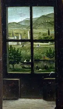 - et enfin, le paysage humanisé visible par la fenêtre, source, pour saint Jérôme, de tentation, de débauche et de corruption.