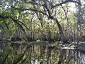 La rivière Ocklawaha se jette dans le Saint Johns et est son plus grand affluent, avec une importance historique significative. Le bassin versant de l'Ocklawaha s'étend à travers les comtés d'Orange, de Lake, de Marion et d'Alachua sur un total de 7 170 kilomètres2. Les villes d'Ocala, de Gainesville et la banlieue nord de la région métropolitaine d'Orlando se trouvent dans ce bassin. Il y a deux sources à l'Ocklawaha : une série de lacs, dont le plus grand est le lac Apopka dans le comté de Lake, et les marais de Green Swamp (en) près de Haines City dans le comté de Polk. La rivière Silver, alimentée par l'une des sources les plus productives de Floride avec 200 000 000 litres par jour, est située à mi-chemin le long des 154 kilomètres de l'Ocklawaha[44]. Comme le Saint Johns, l'Ocklawaha coule vers le nord.